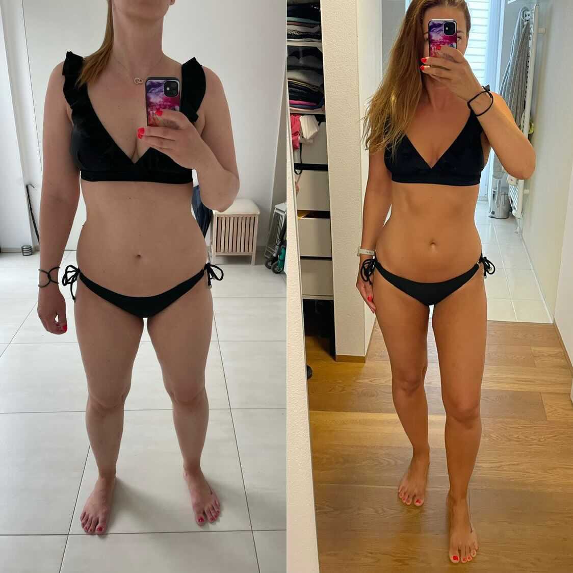 Vždy som sla na vahe hore,ale paradoxne az pri cviceni s tebou mi sla vaha dole..pomaly,ale sla. A ked som si urobila porovnavaciu foto, neverila by som,ako sa mi postava zmenila...ako som spevnela, neskutocne mi ubudlo takych faldovych miest a ten pocit,ze obleciem bez stahovania brucha gate,kde mi vsade cosi trcalo...aj ked teraz kvoli nohe nemozem,snazim sa drzat si stravu,ked som sa uz tolko na tom namakala 🤪